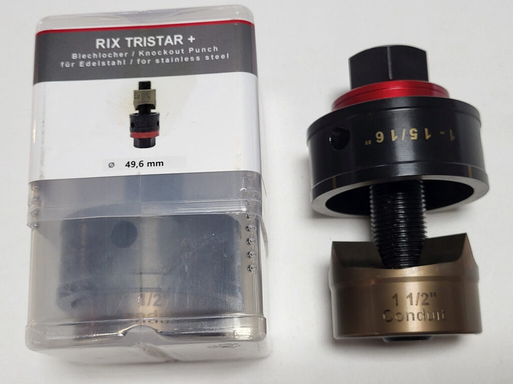 Ø in mm Max. Materialstärke in mm Größe Metrisch Größe PG Größe Inch Größe Conduit Stempel + Matrize + KL Stempel + Matrize Passende Zugbolzen Passende Zugschraube mit KL 12.7 2.0 M12 7 1/2″ 0.500 4010013 4010010 409100 409100 15.2 2.0 M12 9 0.598 0.598 4010023 4010020 409100 409122 63.5 3.0 M63 48 2-1/2″ 2.500 […]